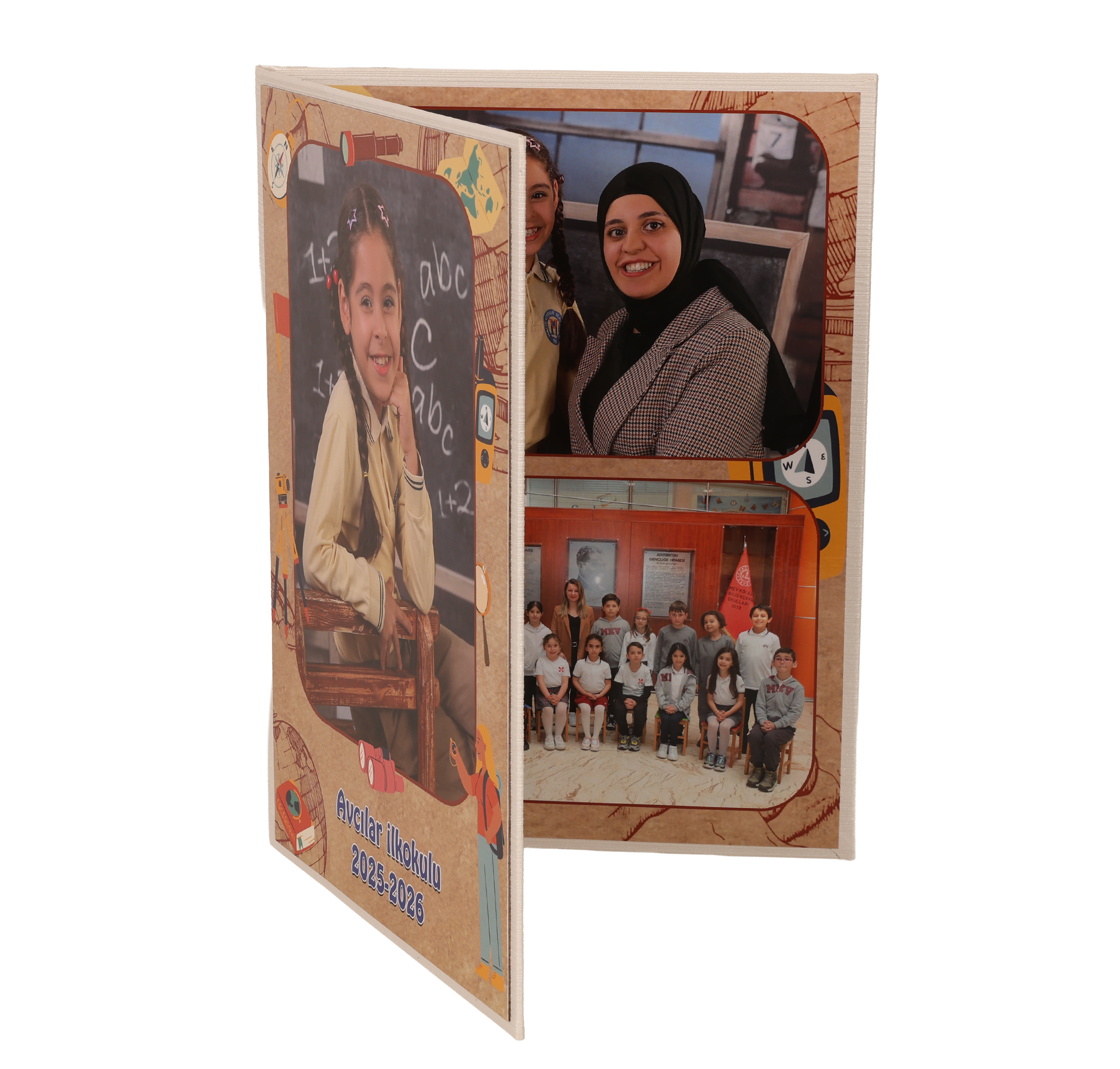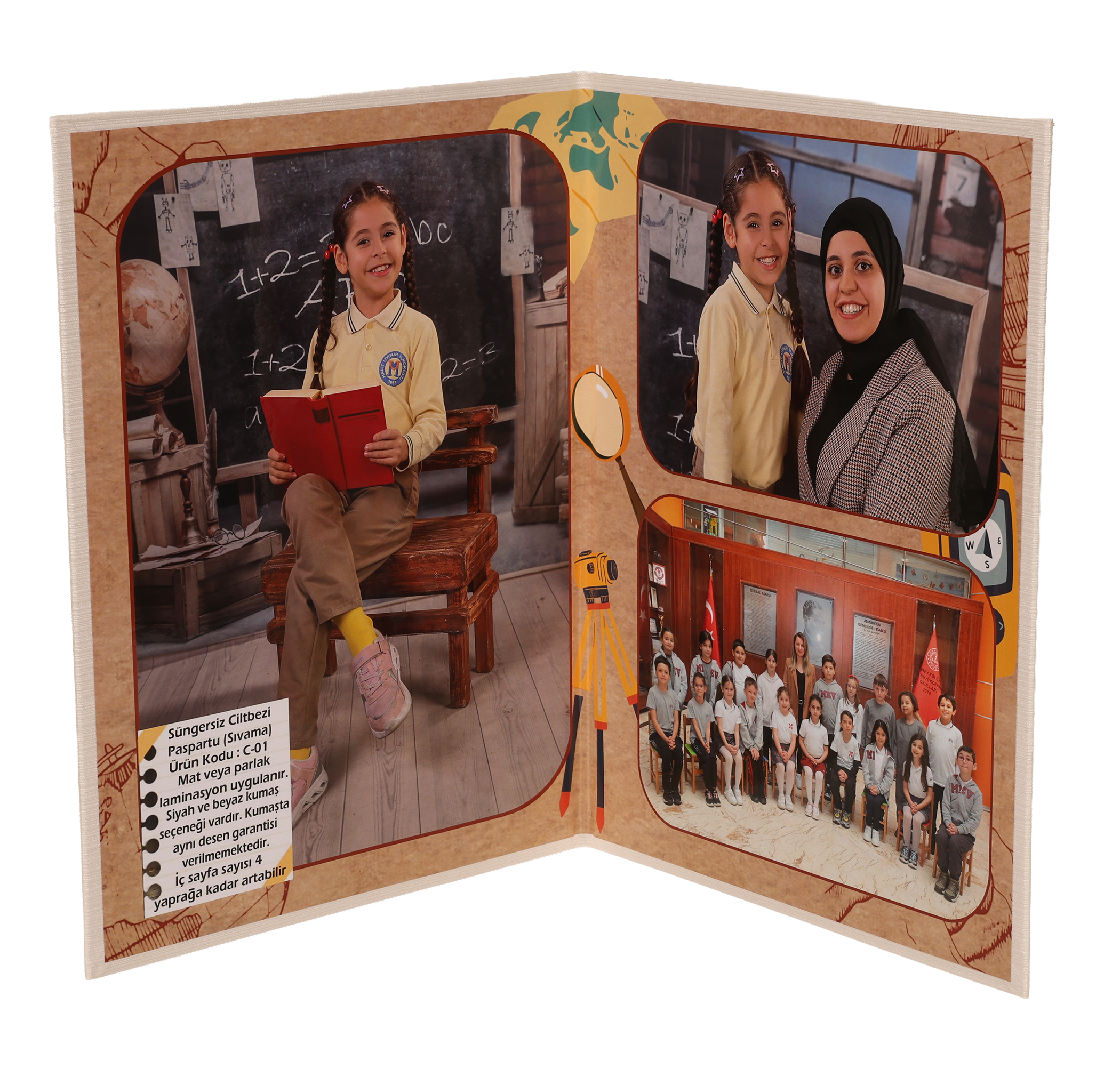 Albüm üstüne okul ismi yazılabilir.